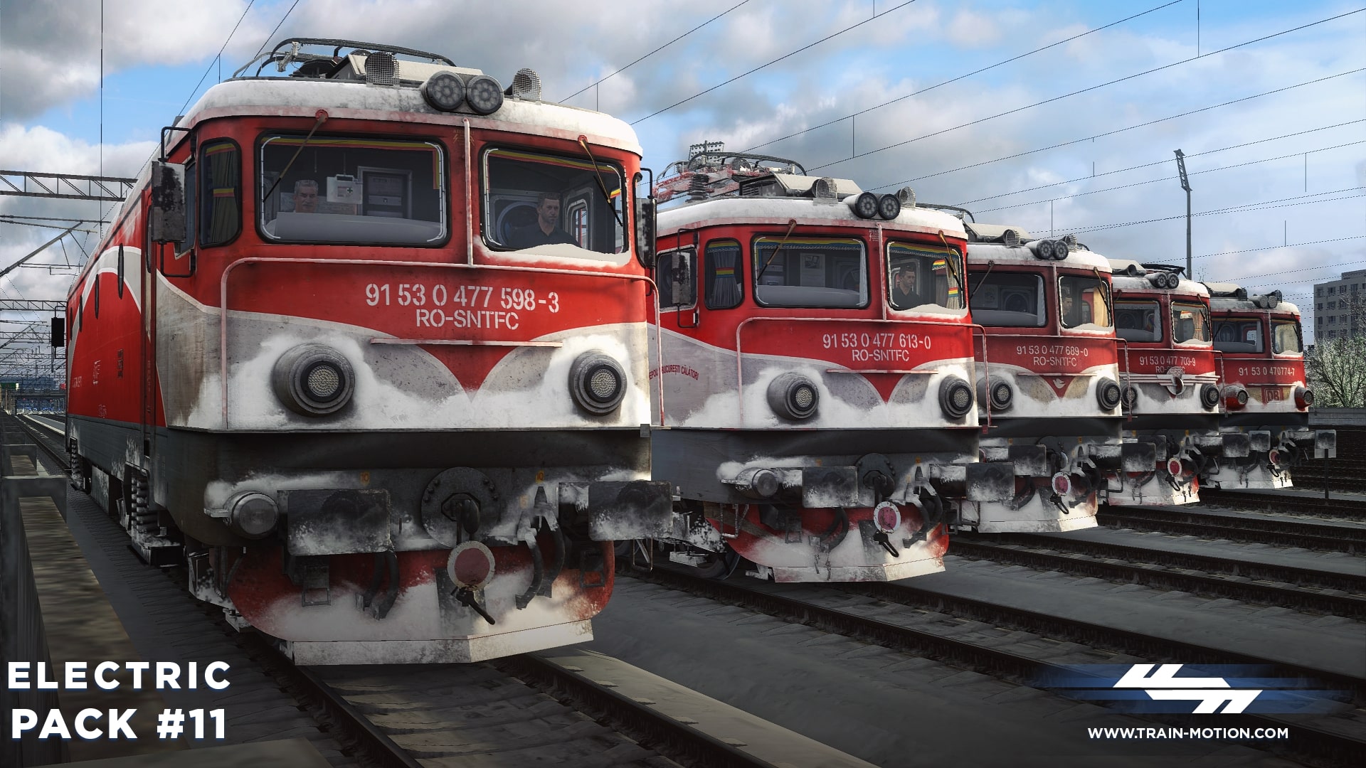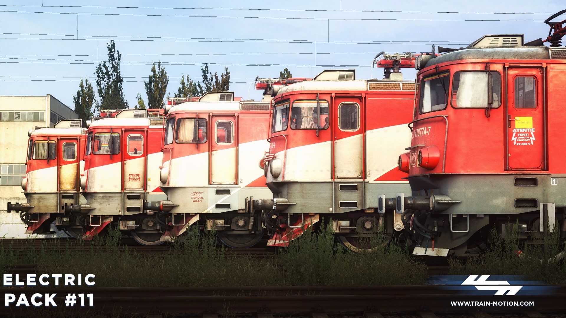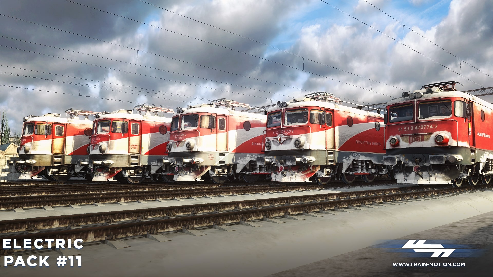 Electric Pack #11 contains five different reskins used by the Romanian national railway company CFR Călători and DB Cargo Romania, representing locomotives from various depots in Romania: Brașov, București, and Arad.