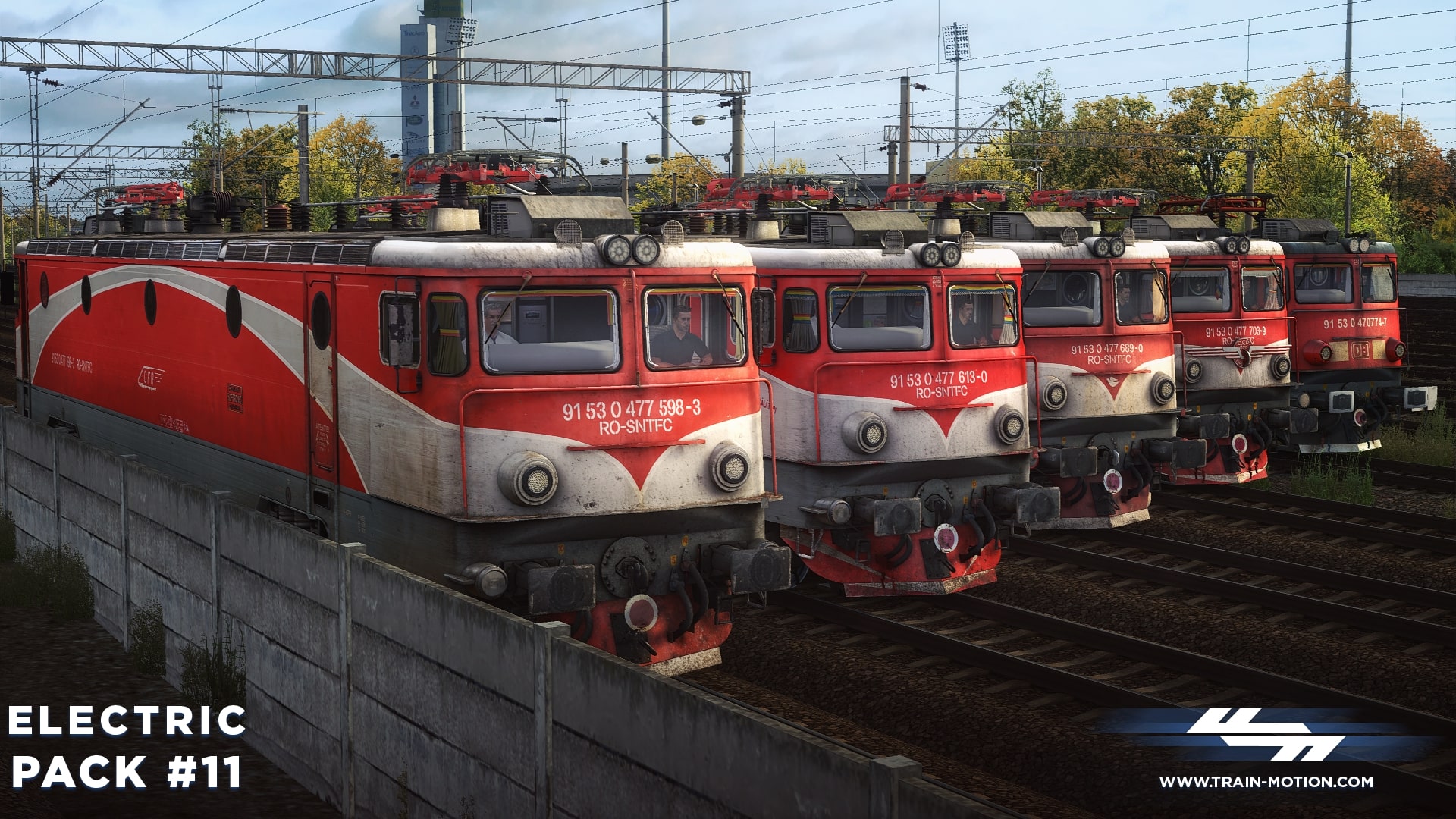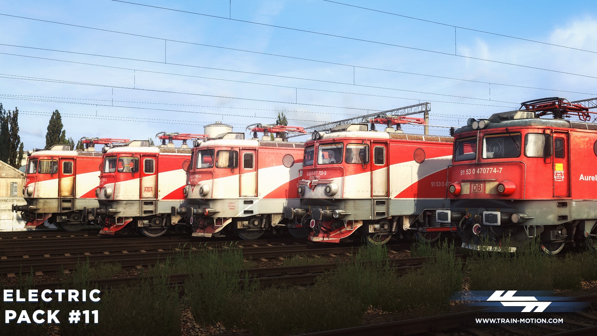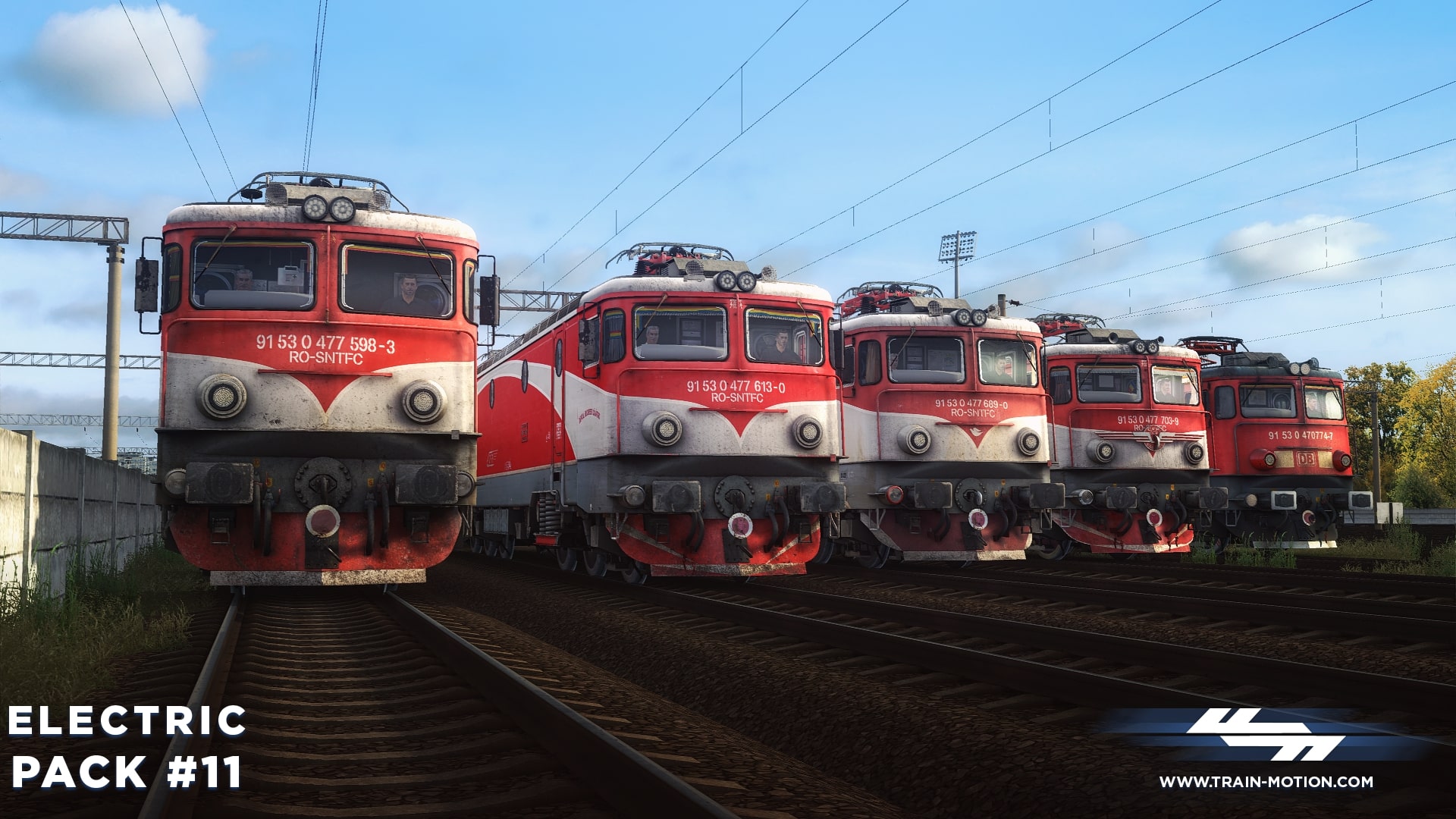 Electric Pack #11 contains five different reskins used by the Romanian national railway company CFR Călători and DB Cargo Romania, representing locomotives from various depots in Romania: Brașov, București, and Arad.